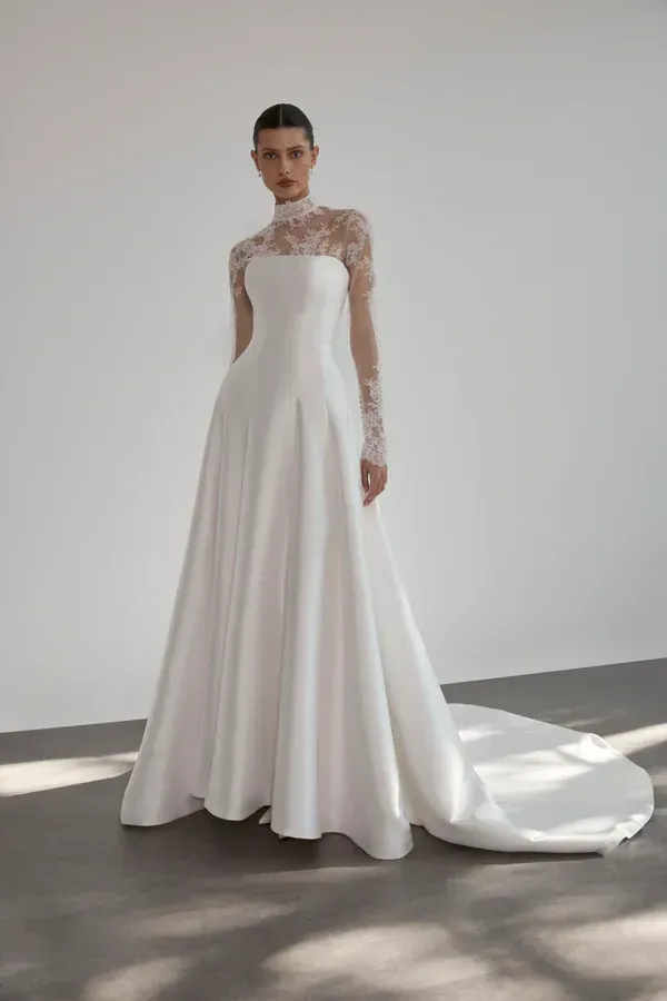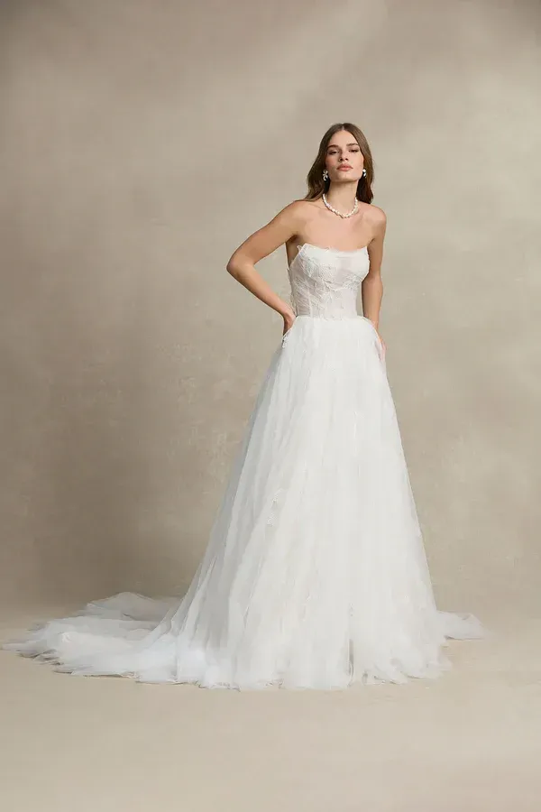 Our French designer La Première celebrates the art of modern romance with a distinctly Parisian sensibility. Each gown is a masterpiece—balancing timeless elegance and contemporary allure through expert craftsmanship, sumptuous fabrics, and refined details. The result is confident, subtly seductive sophistication that feels undeniably French. Gowns are highly customizable and priced between $3,000–$6,000. Please call or text to inquire about specific designs or availability.